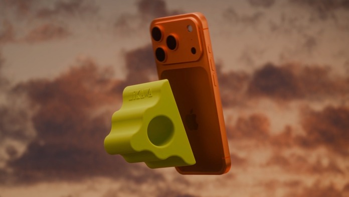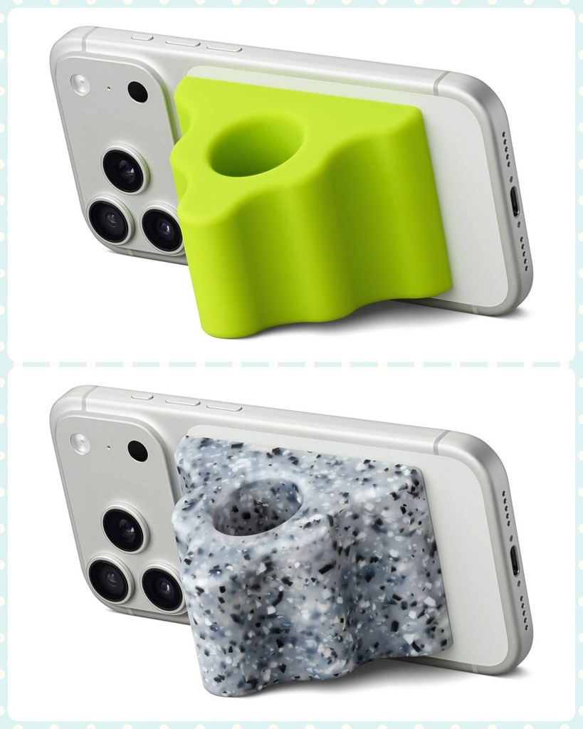 Hikawa Phone Grip & Stand 以全矽膠材質製作,外型呈三角形,有層級外表,中間有圓形中空,使用 MagSafe 磁吸方式連接著 iPhone。限量版有仿花崗岩石色及鮮亮青檸色,售價 70 美元,大約是546 港元。
