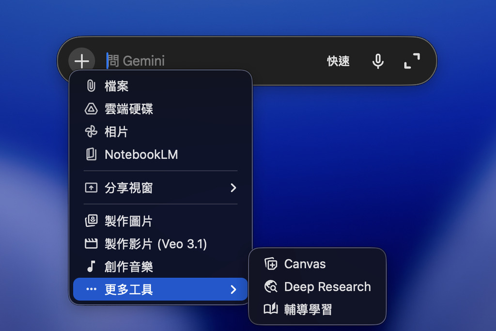 雖然 Google 是三巨頭(OpenAI, Anthropic, Google)中最遲推出 Mac 原生 App 的一家,但其與 Google Drive、Gmail 及 Workspace 的深度整合,加上能召喚 NotebookLM 的能力,讓 Gemini 在生產力工具的定位上顯得非常強勢。如果你也是常駐 Google 生態系的 Mac 用戶,這次的 Gemini 原生App 絕對值得第一時間下載。