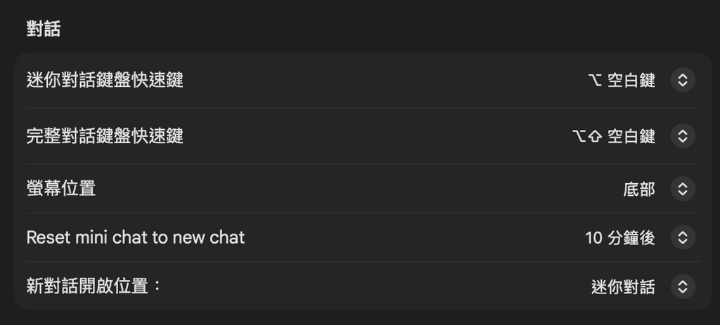 若需處理長篇文章或程式碼,可使用 Option + Shift + Space ,或按對話框右上角,切換至完整側邊欄模式。