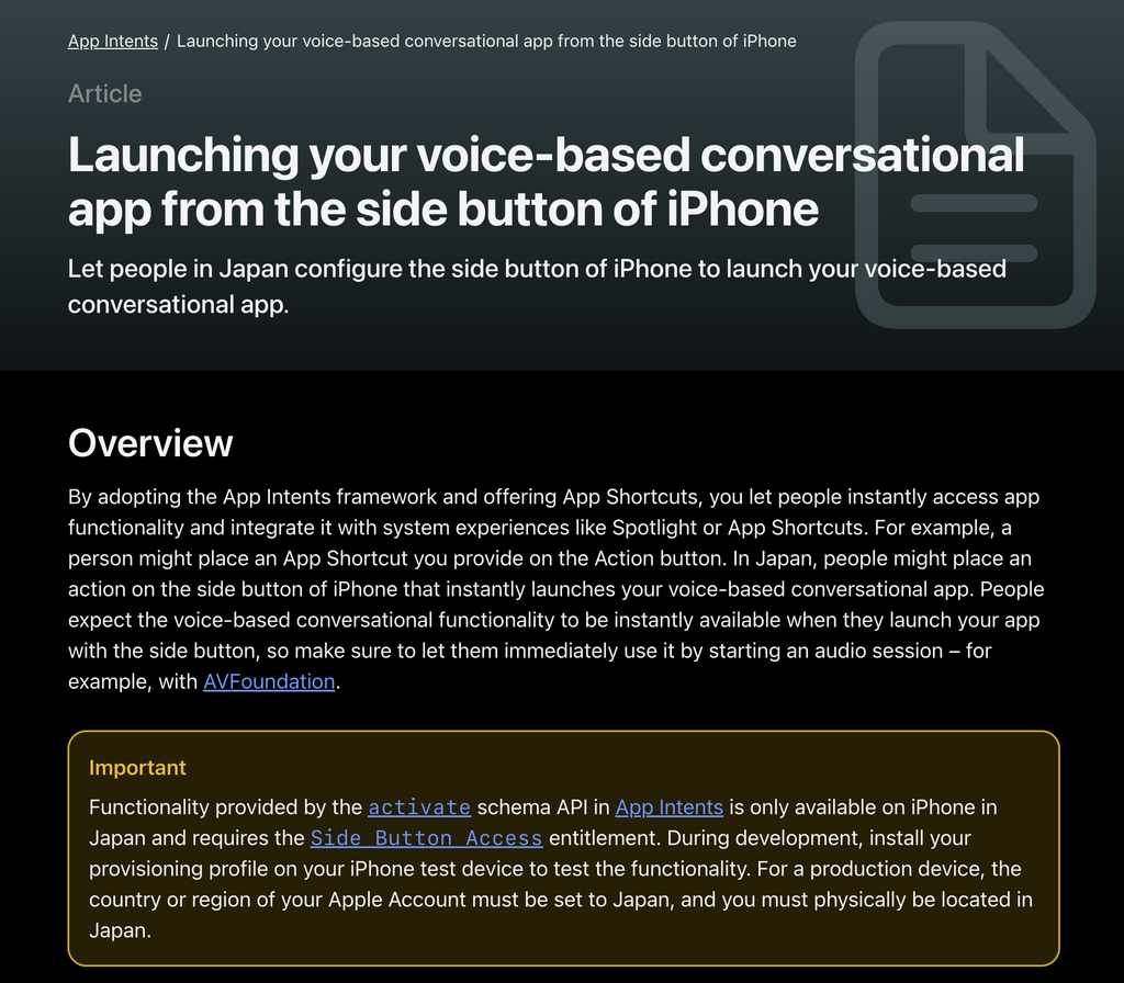 相關程式碼存在於專屬的 Siri 框架中,暗示此變更與虛擬助理功能相關,且涉及長按操作。更新後的功能將允許日本用戶設定 Google Gemini、Amazon Alexa 或其他語音助理應用程式,取代 Siri 成為側邊按鈕長按時的啟動選項。事緣今年 8 月,日本監管機構通過《行動軟體競爭法》,要求 Apple 開放第三方應用程式存取核心作業系統功能,當中更包括雖開放 Siri 以外的語音助理服務。有關法例將於 2025 年 12 月正式生效,因此 Apple 透過在 iOS 26.2 版本來為日本地區用戶開放有關功能,但據知這個功能只有日本境內,並需要使用日本地區註冊 的 Apple ID 用戶才能使用。