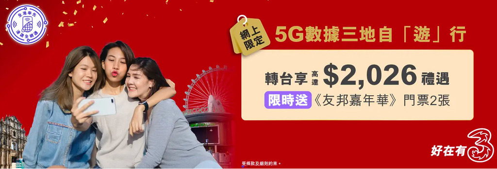 因應近期頻繁的中港澳往來需求,3HK 特別針對攜號轉台客戶推出「2026 賞」限時優惠。這項推廣的核心亮點在於其 5G 三地數據共享功能,用戶在中國內地、香港及澳門使用數據時,毋須額外購買漫遊包或分開計算用量,而是可以根據行程靈活調配,對於經常往返三地的用家而言,省去了手動切換與配額限制的煩惱。