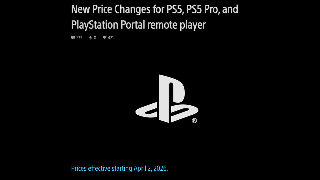遊戲玩家迎來壞消息,就記憶體和 SSD 不斷加價,加上地區關稅影響,Sony 官方宣佈將針對旗下 PlayStation 系列產品進行新一輪的全球價格調整。由 2026 年 4 月 2 日起,包括美國、歐洲、英國及日本等多個主要市場的 PS5、PS5 數位版、PS5 Pro 主機,以至 PlayStation Portal 遙控遊玩機的建議零售價將會全面上調,Sony 將是次加價歸咎於「全球經濟環境持續面臨壓力」。