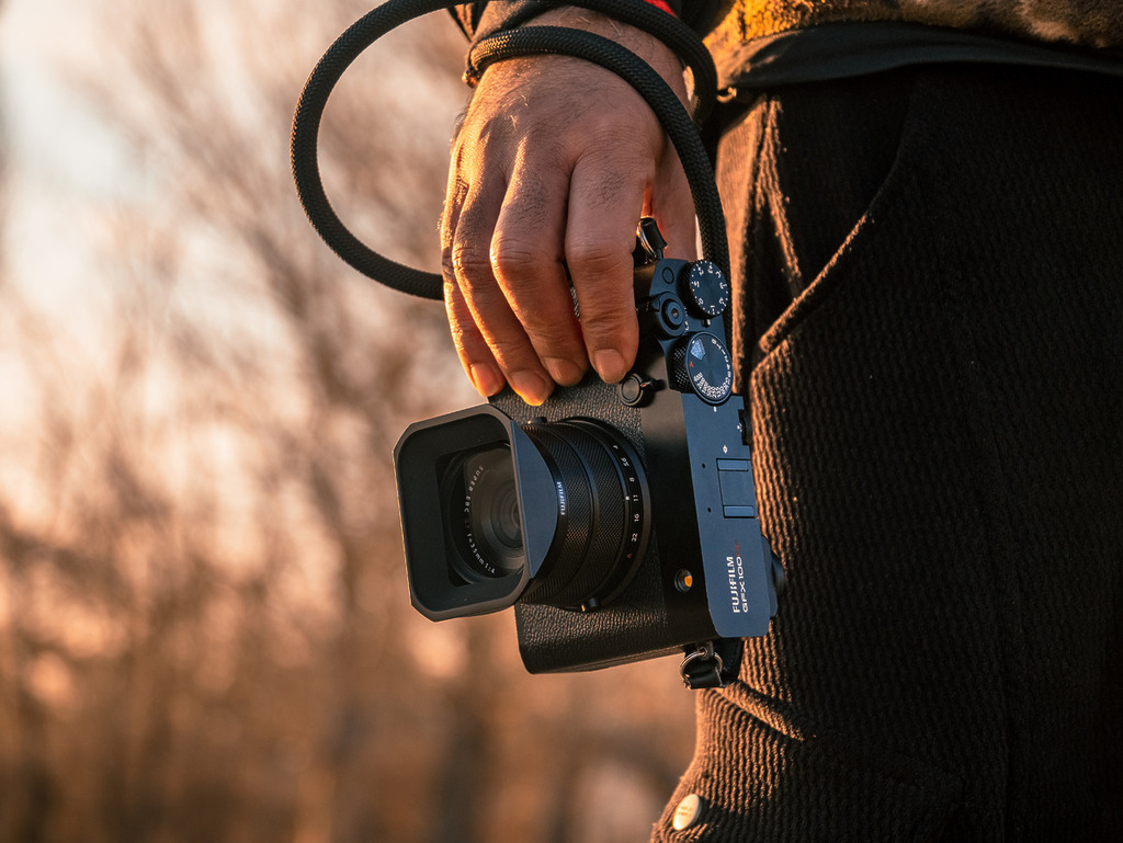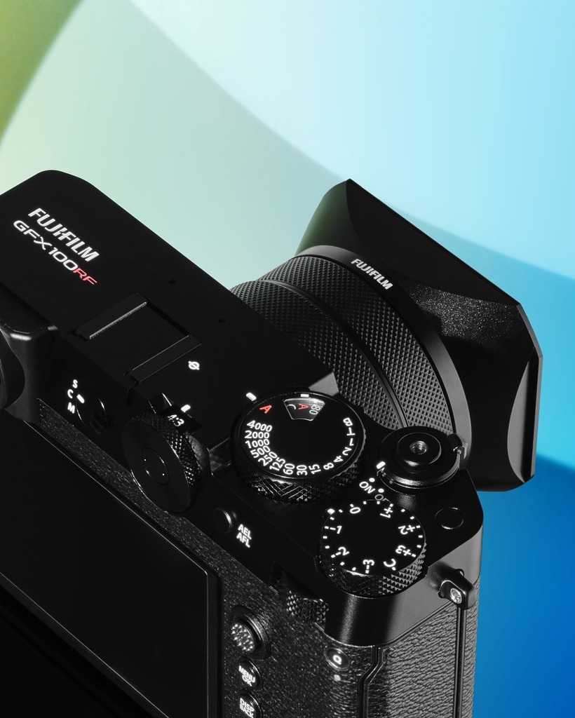 GFX100RF 採用固定 35mm f/4 高質素 FUJINON 鏡頭(約 35mm 全片幅等效 28mm),機身重量卻控制在約 700 多克,比不少全片幅機身加鏡組合更輕巧,被評論形容為「可以放進外套的中片幅相機」。