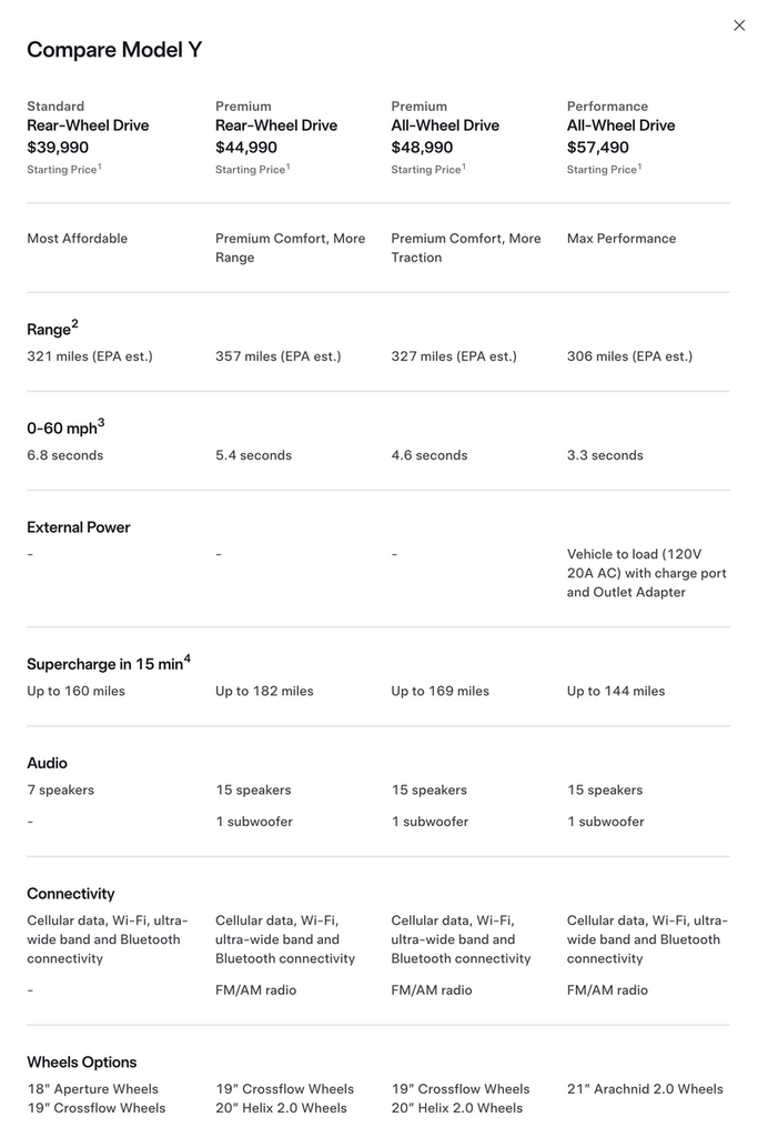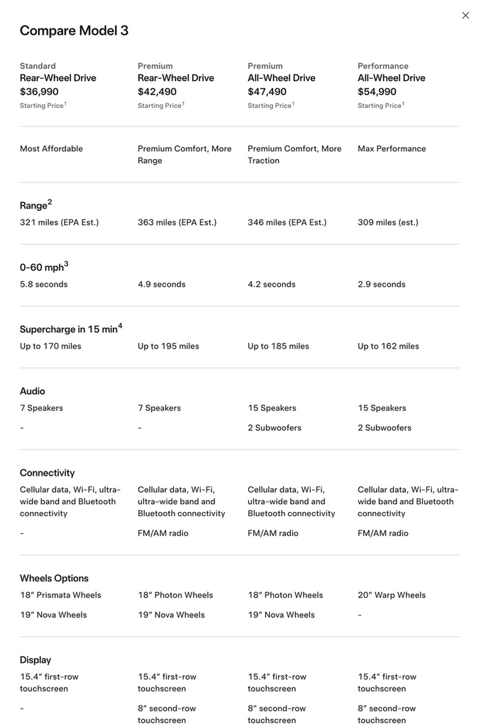 Tesla 在美國公布了 Model 3 和 Model Y 的「標準版」,同時重新編排現有型號名稱,分別是後驅 Premium 版、四驅 Premium 版,以及四驅 Performace 版,看上去比較原有的區分易明。