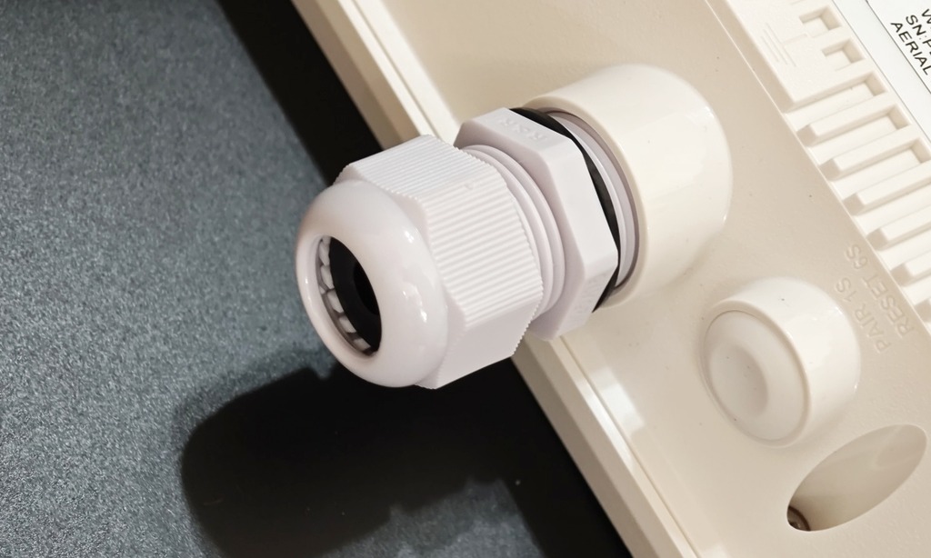 和一般室內用路由器不同,不設有 LAN 插頭,只有一個 2.5Gbps WAN/LAN 自適應網絡線插頭,有防水蓋保護,因此安裝時要先套上防水外殼。