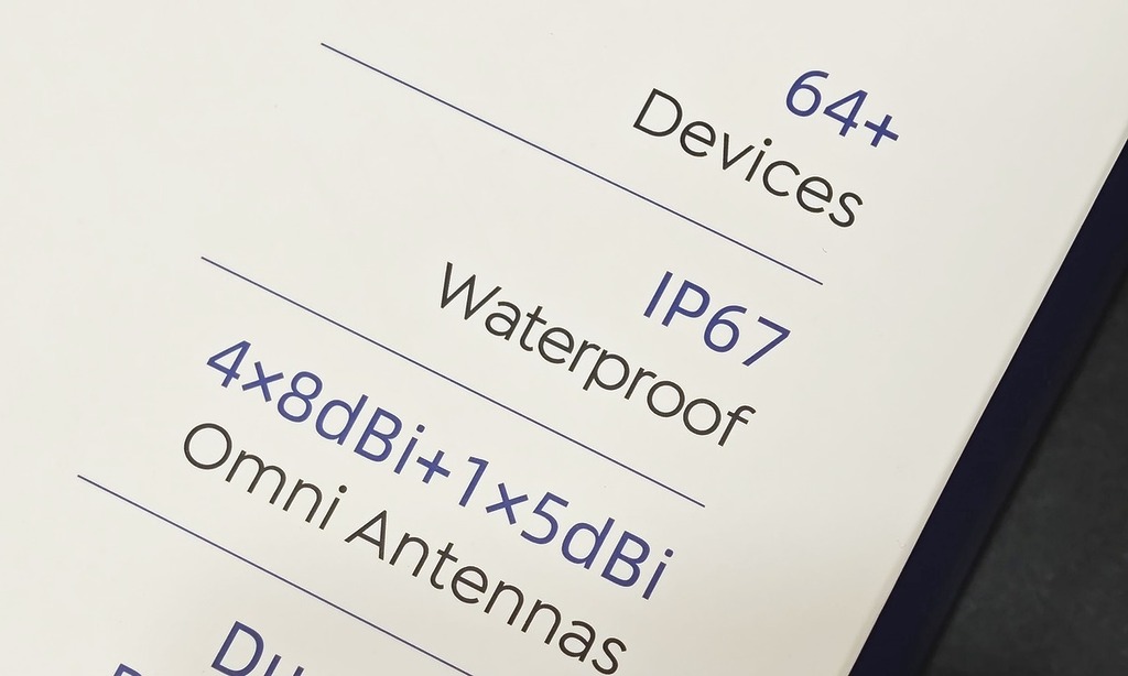 達 IP67 防塵防水等級,具有 4x 8dBi 高增益天線。