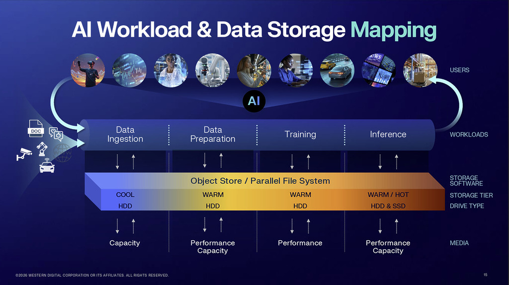 WD 認為,這種設計可縮小熱數據與冷數據儲存層級之間的差距,讓冷數據仍可在合理延遲下被讀取,同時壓低總持有成本(TCO),支援 AI 規模化數據儲存的可持續性。功耗優化 HDD 預計將於 2027 年進入客戶驗證階段,成為其 100TB 世代前後的重要補充產品線。